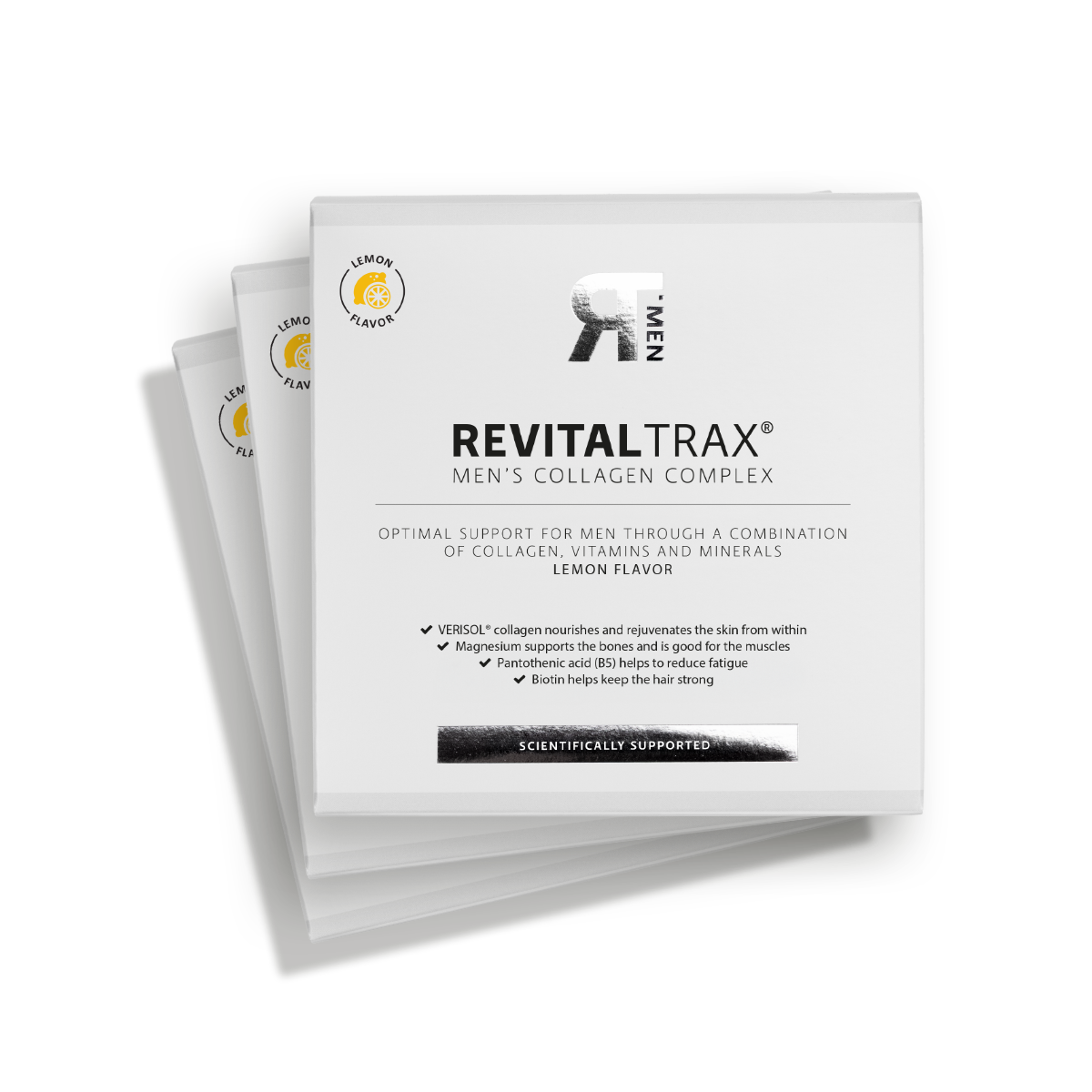 With RevitalTrax Men’s Collagen Complex, you can counteract this process from within. The VERISOL® bioactive collagen peptides in this complex are specially developed to be optimally absorbed by your body and to strengthen the skin from the inside out.