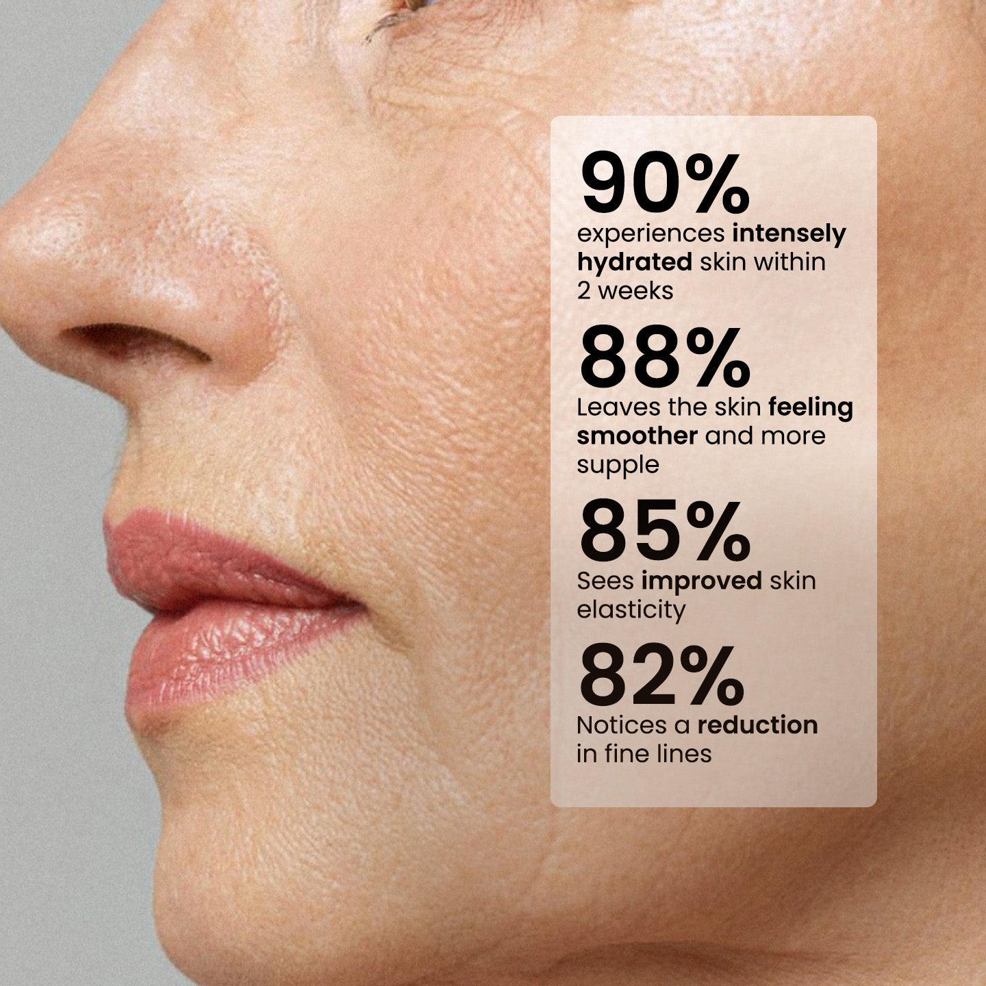 Moisture is essential for a resilient and supple skin. The application of hyaluronic acid in a serum or cream helps the skin to retain moisture.