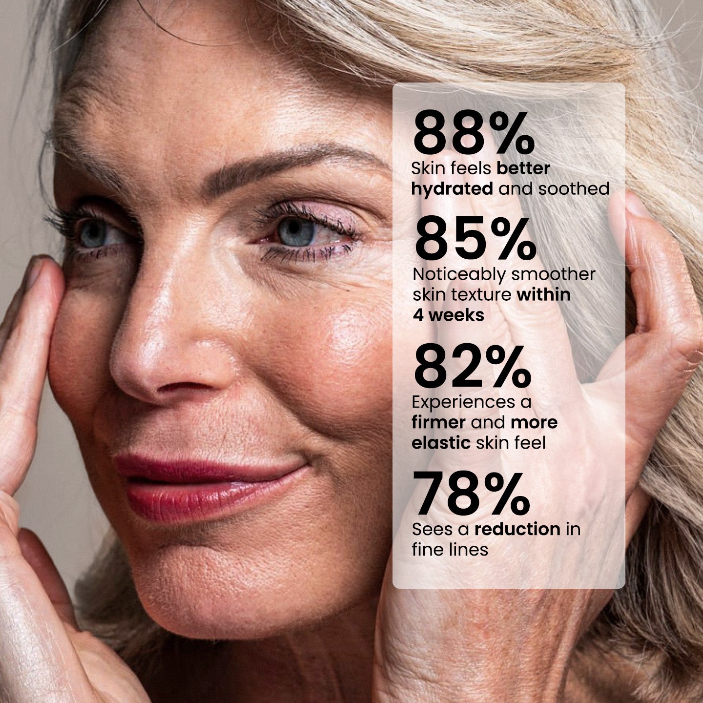 • The skin naturally renews itself approximately every 28 days. Bakuchiol stimulates this process, helping dull skin cells shed more quickly and revealing a fresh, radiant complexion.