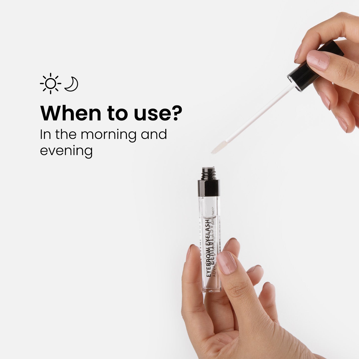 Apply the serum to clean, dry eyelashes and eyebrows using the applicator, in the morning and/or evening.