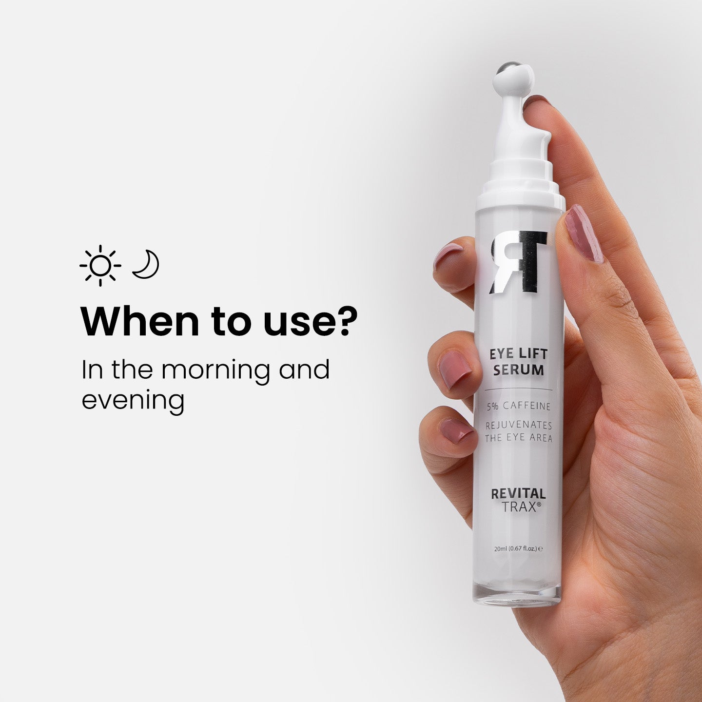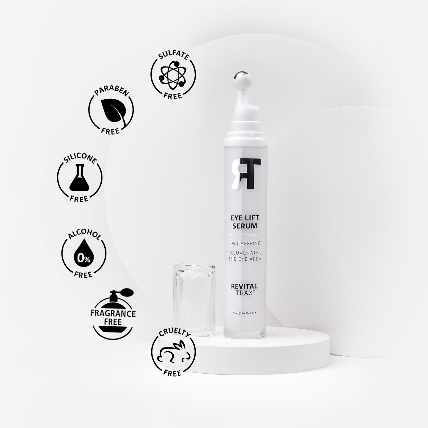 The Eye Lift Serum refreshes, firms and soothes the skin around the eyes in one simple step. With 5% caffeine and EGCG, it visibly lifts the eye area and effectively reduces signs of fatigue.