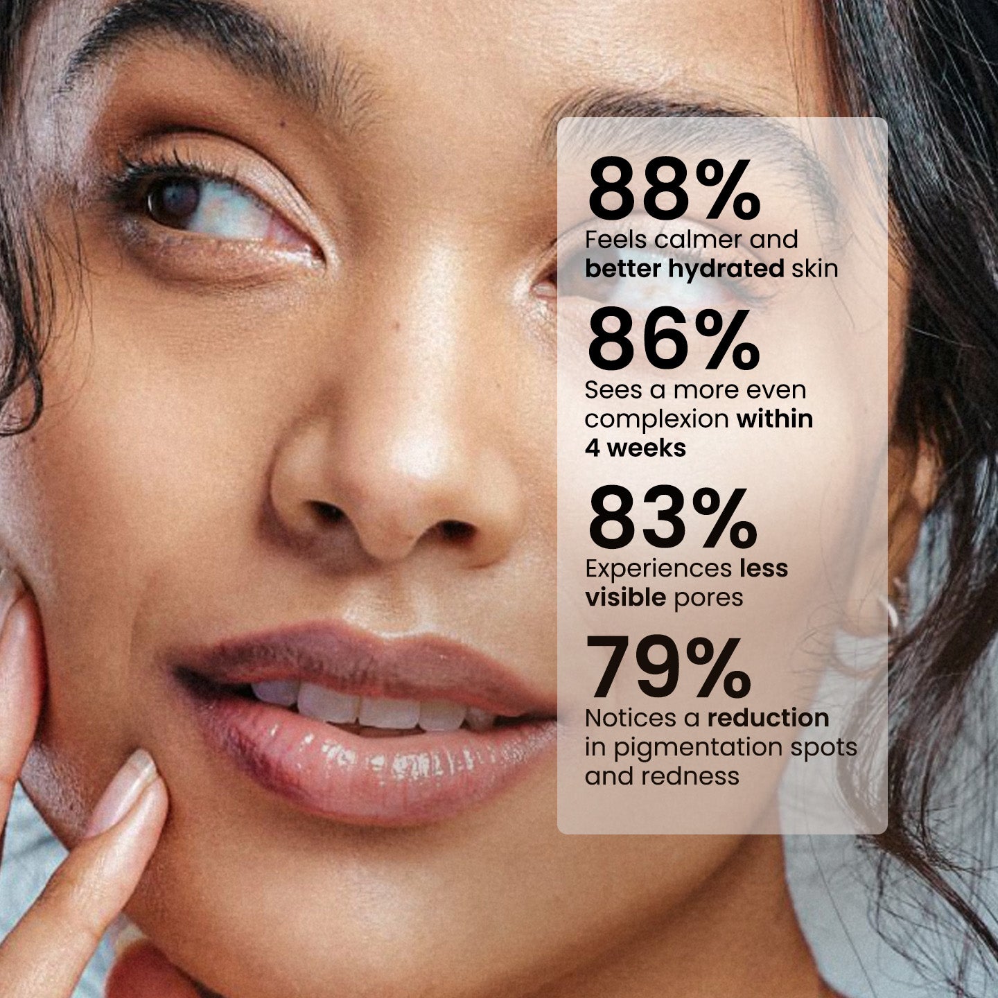 With daily use, your skin will glow with a brighter, more even complexion and a visible improvement in texture.