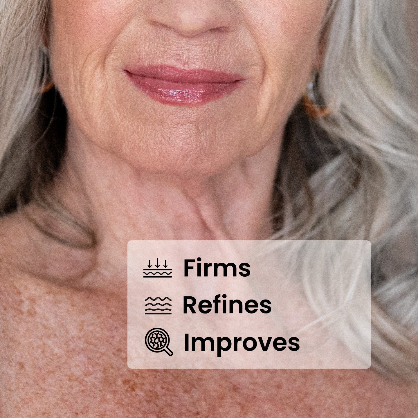 We combine several powerful peptides with antioxidants and other skin-repairing ingredients to restore your neck and décolletage to its optimal radiance. In this way, we not only help you reduce the signs of aging, but also protect your skin from further damage caused by free radicals and other external factors.