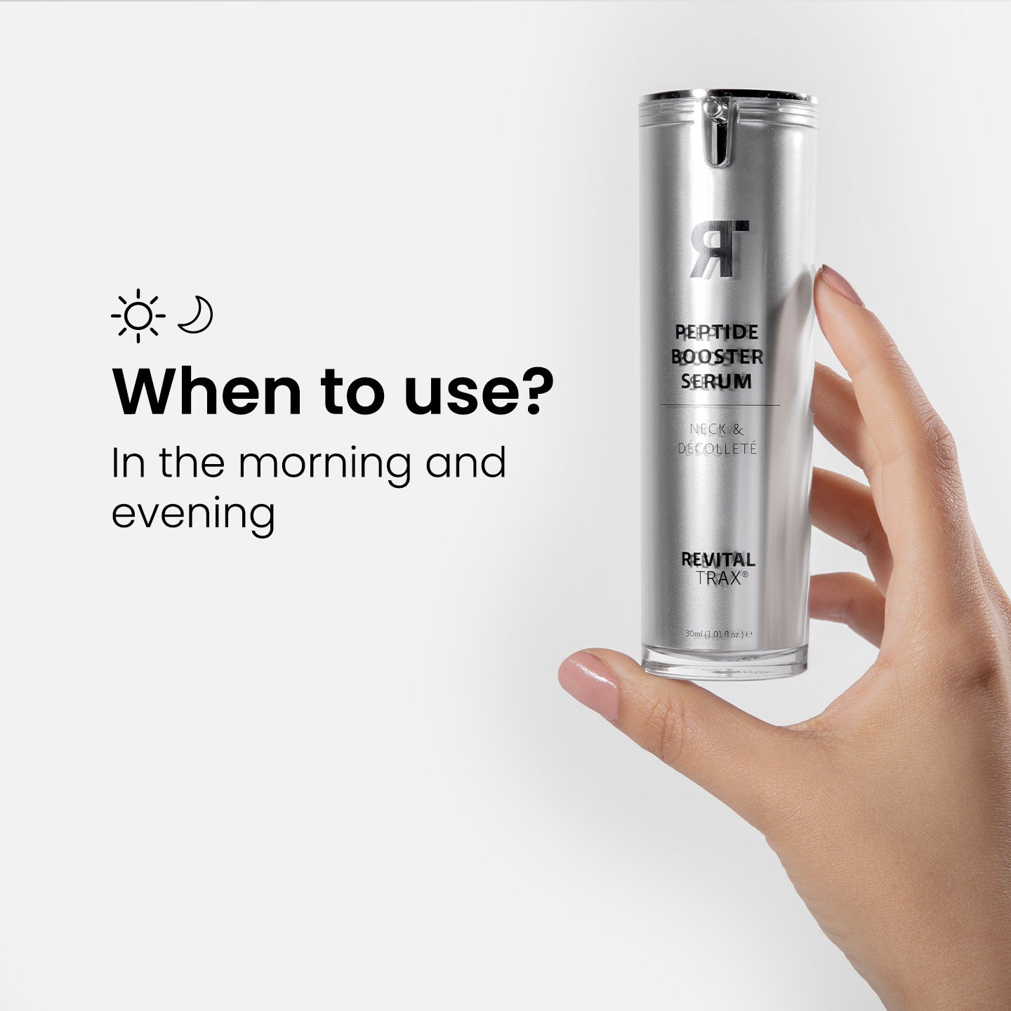 - Finally, use the Peptide Cream. Gently massage it onto your neck and décolleté for optimal care and rejuvenation.