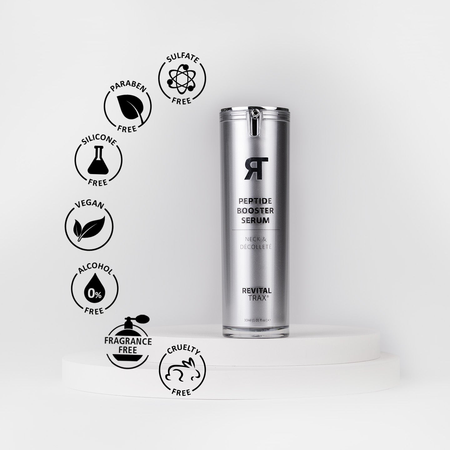 - Then gently massage the Peptide Serum onto your neck and décolleté until absorbed. This serum gives your skin a real anti-wrinkle boost.