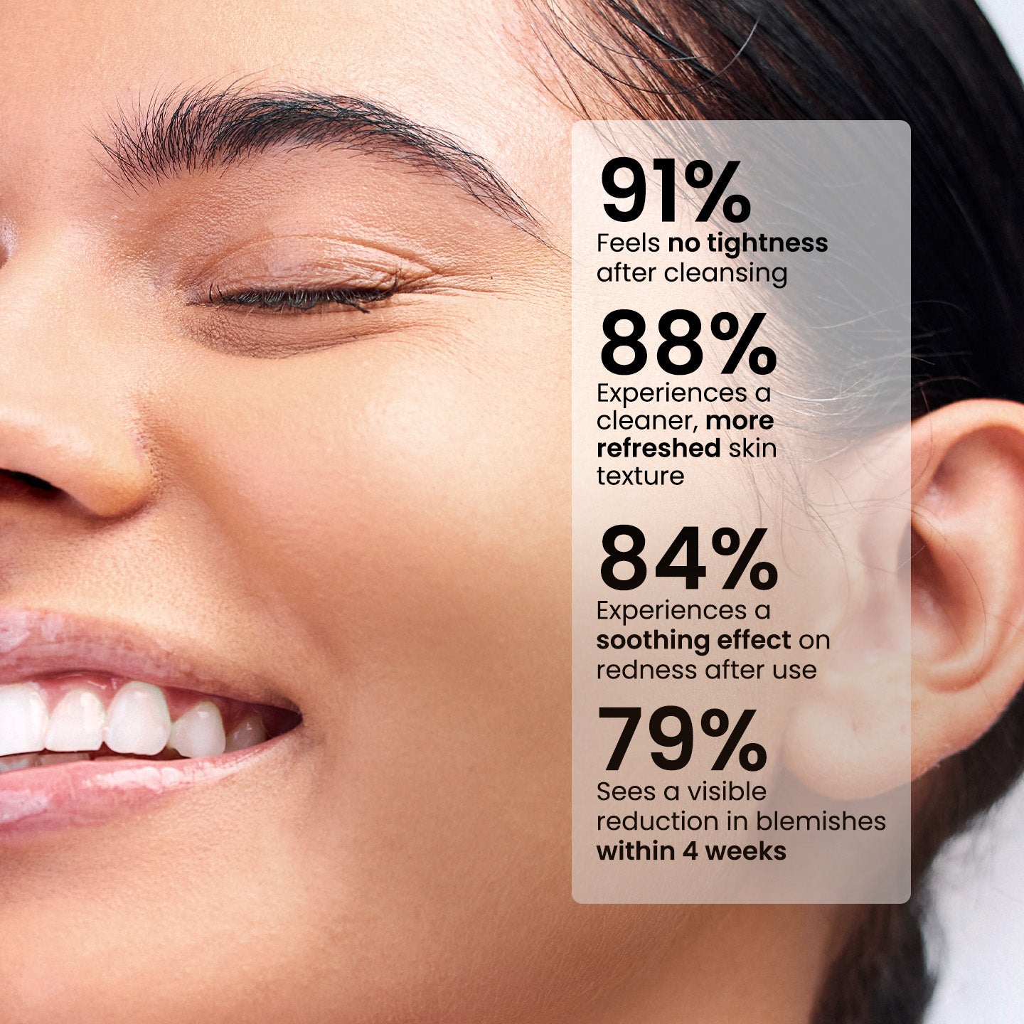 It reduces or prevents impurities and any excess fat on the skin. The cleanser can be used daily for a visibly fresh and more even skin.