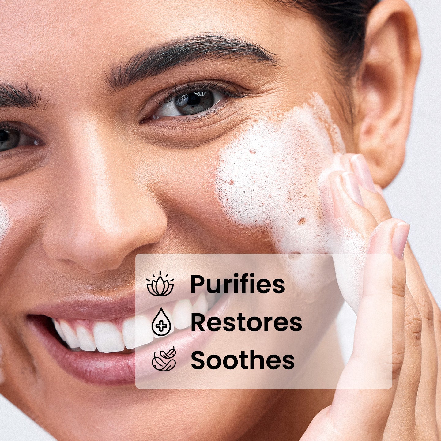 Remove any makeup with a remover first. Then mix the skin cleanser in your hands with lukewarm water to turn it into a lather. Then massage it over your face in circular movements for at least one minute. Rinse the skin well and finally pat your face dry with a clean towel.